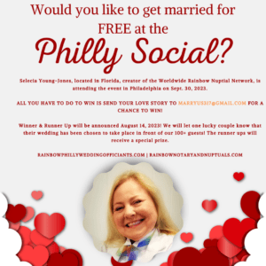 We provide the ceremony and free consultations with the couple to craft the perfect service for their special day. We make sure to get the license filed with the proper Clerk of Courts. To be chosen to be a part of this big day is very special. We love weddings. You can be Married in a Minute™ or enjoy a full ceremony. Our motto is MARRYING EVERYONE UNDER THE RAINBOW.